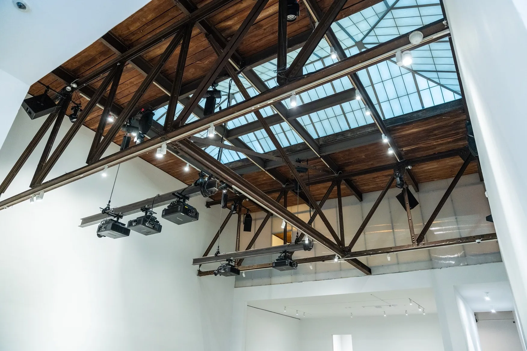 Zero columns in the space optimizes clear sight lines and accommodates a large volume of fabrication components, vehicles, etc.